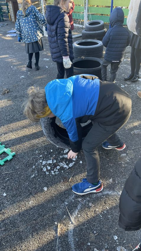 At the start of the week, the focus was less on wind and more on cold. The children enjoyed playing with any with any ice they could find, Mr Finch didn’t enjoying gritting all the paths around the site quite as much! We are very glad that we managed to get all our issues with the heating in Chestnut Class sorted before the break.