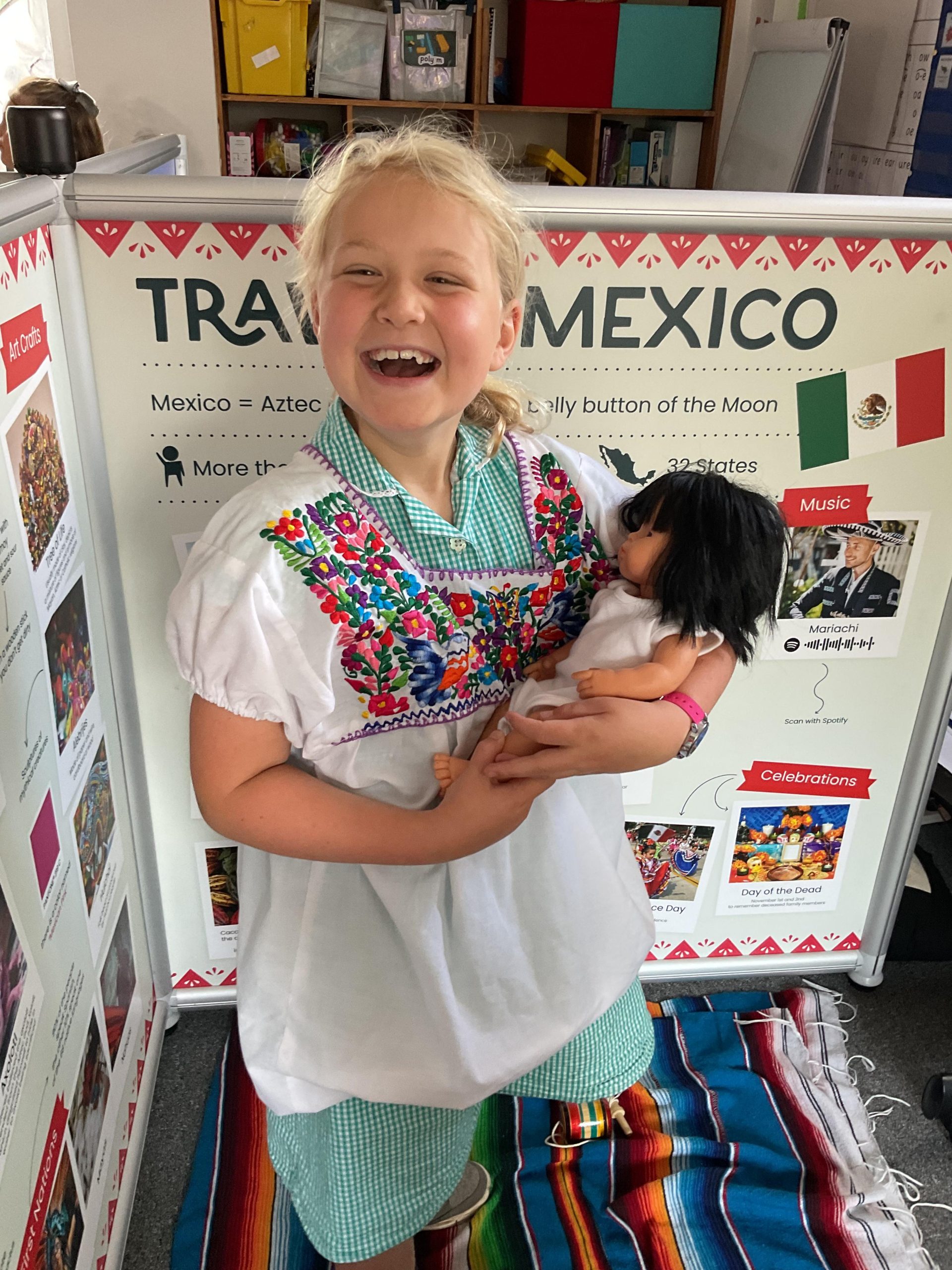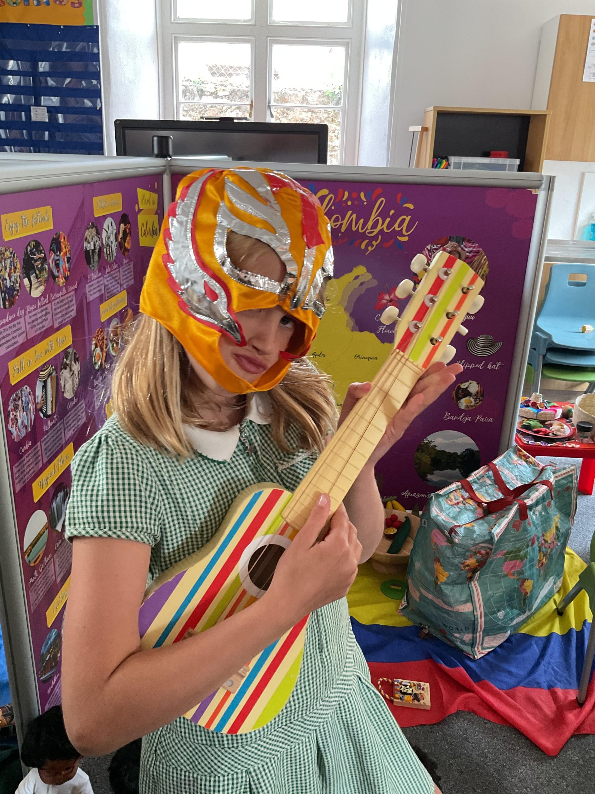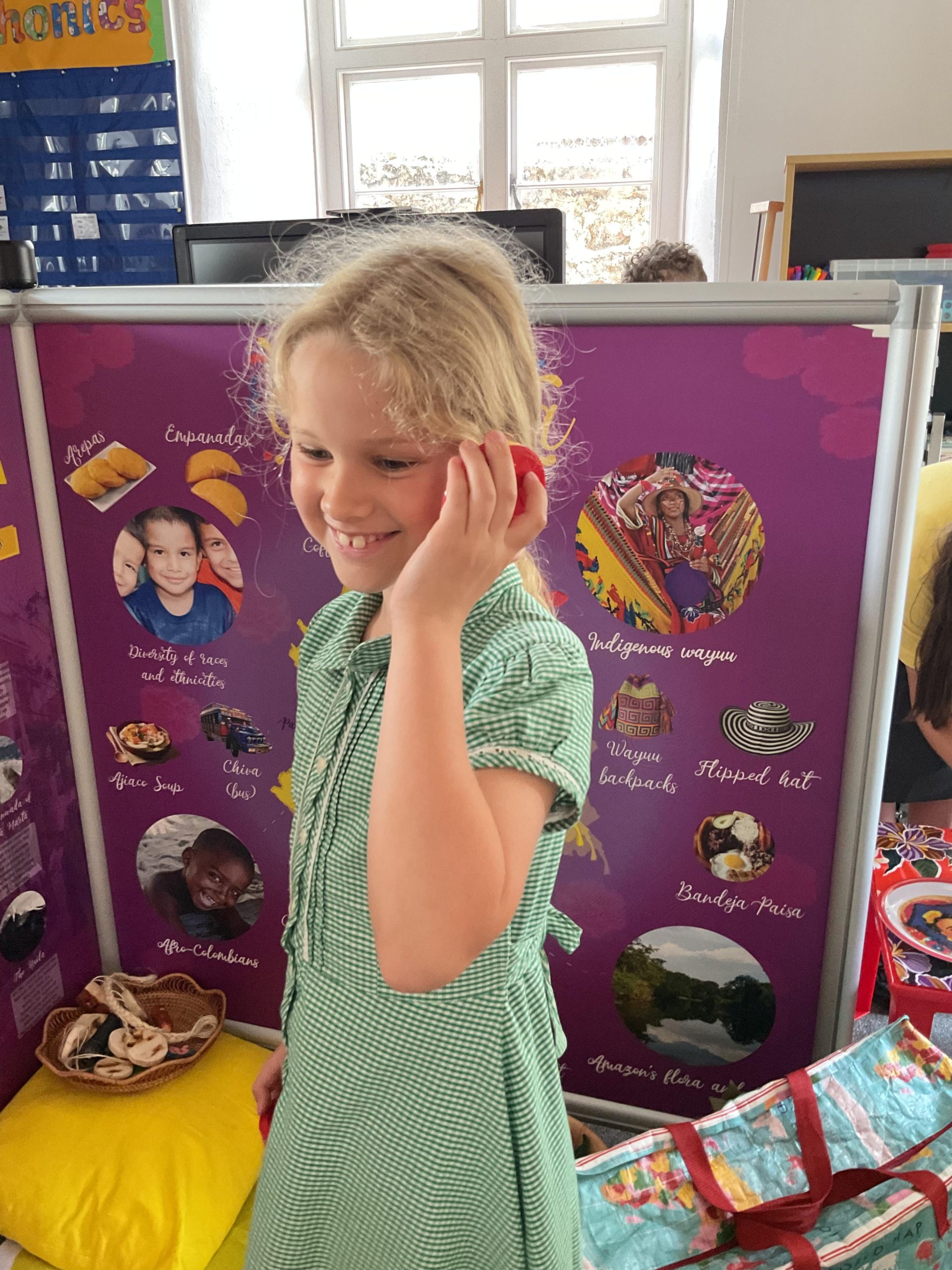 We were lucky to have a visitor in from the Tiny Travels Wind Rush Workshops to take all children in school on an educational trip around the world! The children explored different cultures around the world and how they live. They also looked at what they wear, what music they play as well as traditional food. The children were able to explore different items that were bought in and enjoyed their time learning about different places around the world!